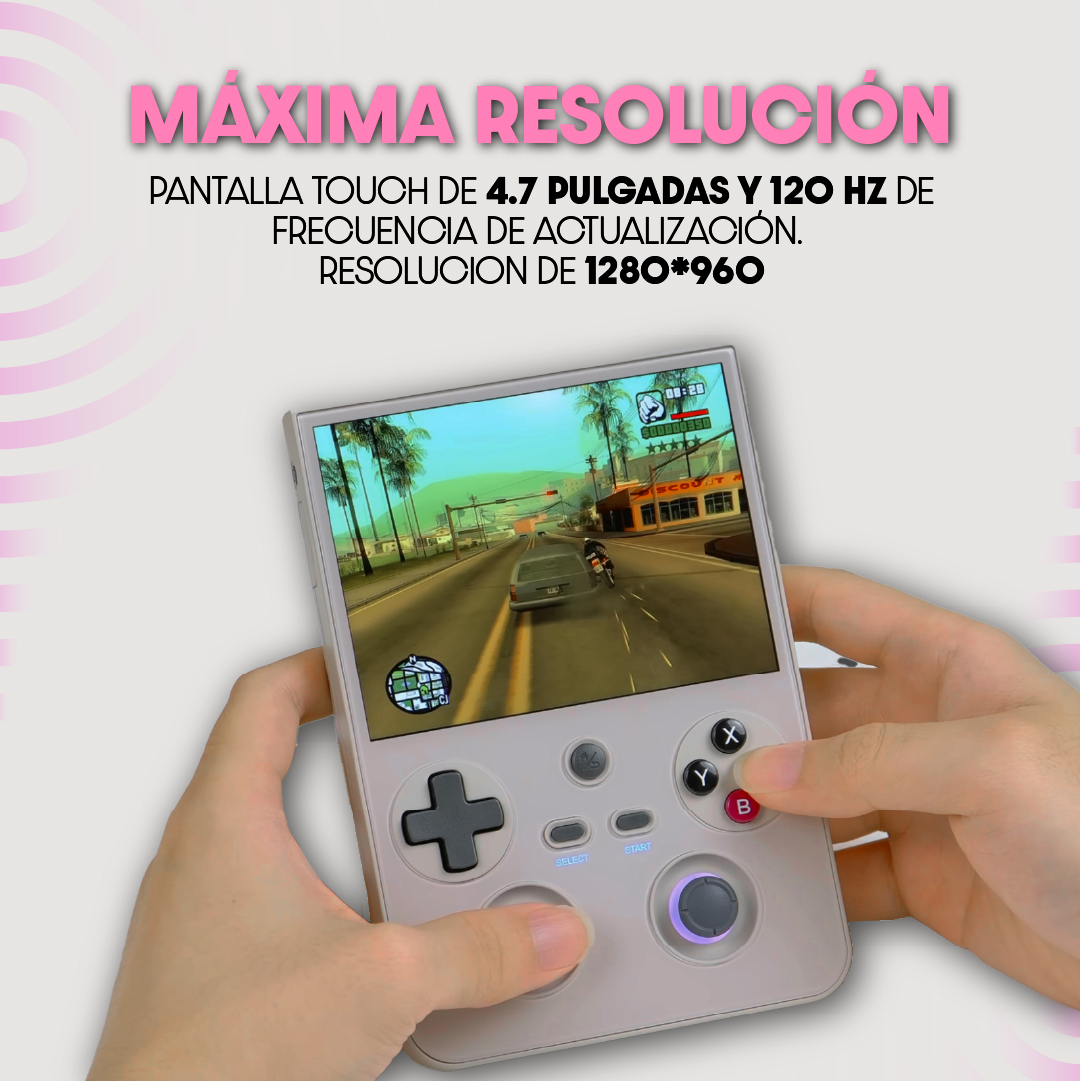 La consola cuenta con una pantalla HD 640*480IPS-LCD de 4 pulgadas con una relación de aspecto de 4:3, lo que proporciona una experiencia de juego clara y vívida.