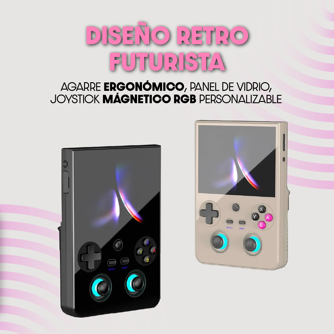 Diseño retro moderno y tus juegos favoritos en la palma de tu mano con la consola portátil más potente en el mercado.